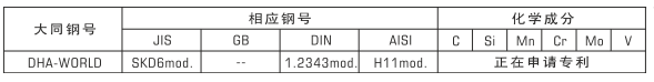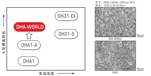 代替DHA1(JIS-SKD61相當(dāng))作為大型壓鑄模具可以放心使用的高信賴度通用熱作模具鋼。